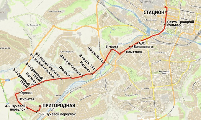 - Б. Хмельницкого - Красноармейская - 8 марта - Дальняя Садовая - Дальняя Комсомольская - Орлова -